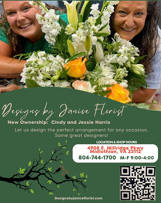 Designs by Janice was established 16 years ago and has an impeccable reputation for quality and service. It has now grown to be under new ownership with five fantastic designers, including Janice, and services a multitude of zip codes in the Central VA area.